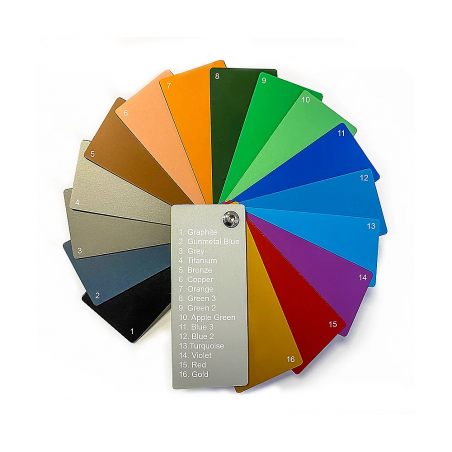 Chaque appareil Sugden bénéficie d'une façade avant anodisée, c'est à dire qu'elle reçoit un traitement électro-chimique qui renforce sa dureté et dont la finition varie : vous pourrez choisir parmi 16 coloris, le graphite et le titane étant des finitions standards qui sont livrées avec des leds bleues (voyants lumineux).