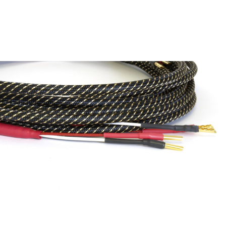 Le câble TCI King Cobra utilise un alliage de cuivre SP, grade aérospatial, isolé par une gaine en teflon ptfe. Les connecteurs sont des fiches bananes bfa dorées.