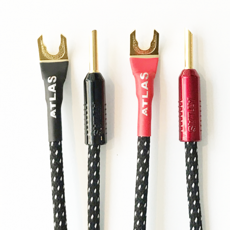 Les jumpers Atlas sont équipés de fourches OFC. Les audiophiles préfèrent les fourches car elles permettent d'assurer une surface de contact plus importante qu'avec les fiches bananes.