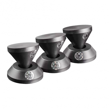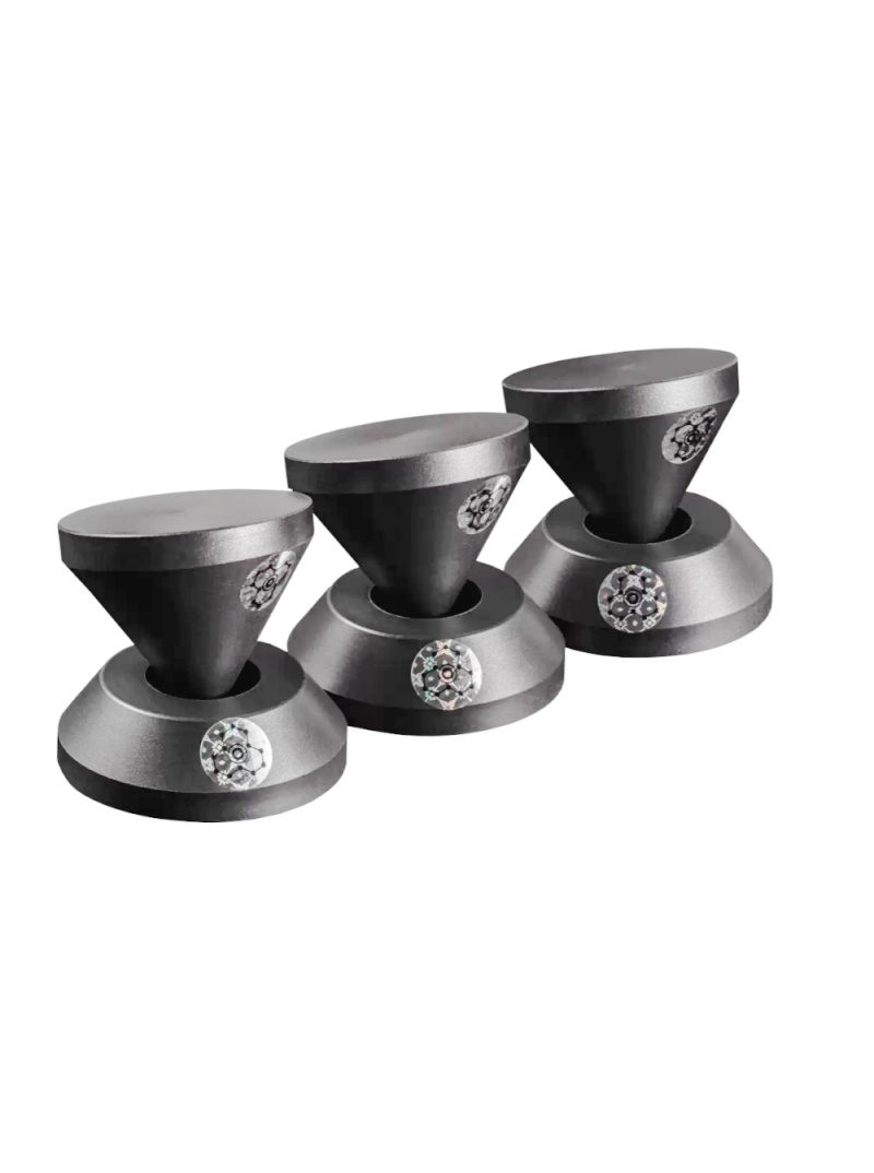 Les cônes d'isolation Graphite Audio IC-35 Premium sont fabriqués à partir d'un nouveau polymère. Les coupelles de base qui ressemblent à des contre-pointes, introduisent un nouveau niveau de performance et protègent la surface de vos supports des rayures.