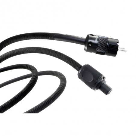 Le câble secteur Atlas Eos 4 EM est constitué avant tout de 3 conducteurs dont la section est de 4.0 mm² en cuivre OFC d'une grande pureté. Ils sont isolés électriquement par un diélectrique PTFE (Teflon) ; l'ensemble est maintenu dans une gaine en PVC couverte d'un tissu noir.