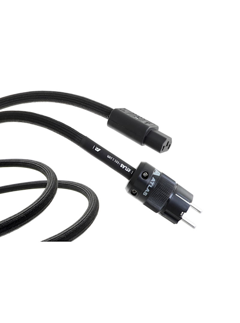 Le câble secteur Atlas Eos 2.5 EM  est constitué avant tout de 3 conducteurs dont la section est de 2.5 mm² en cuivre OFC d'une grande pureté. Ils sont isolés électriquement par un diélectrique PTFE (Teflon) ; l'ensemble est maintenu dans une gaine en PVC couverte d'un tissu noir.